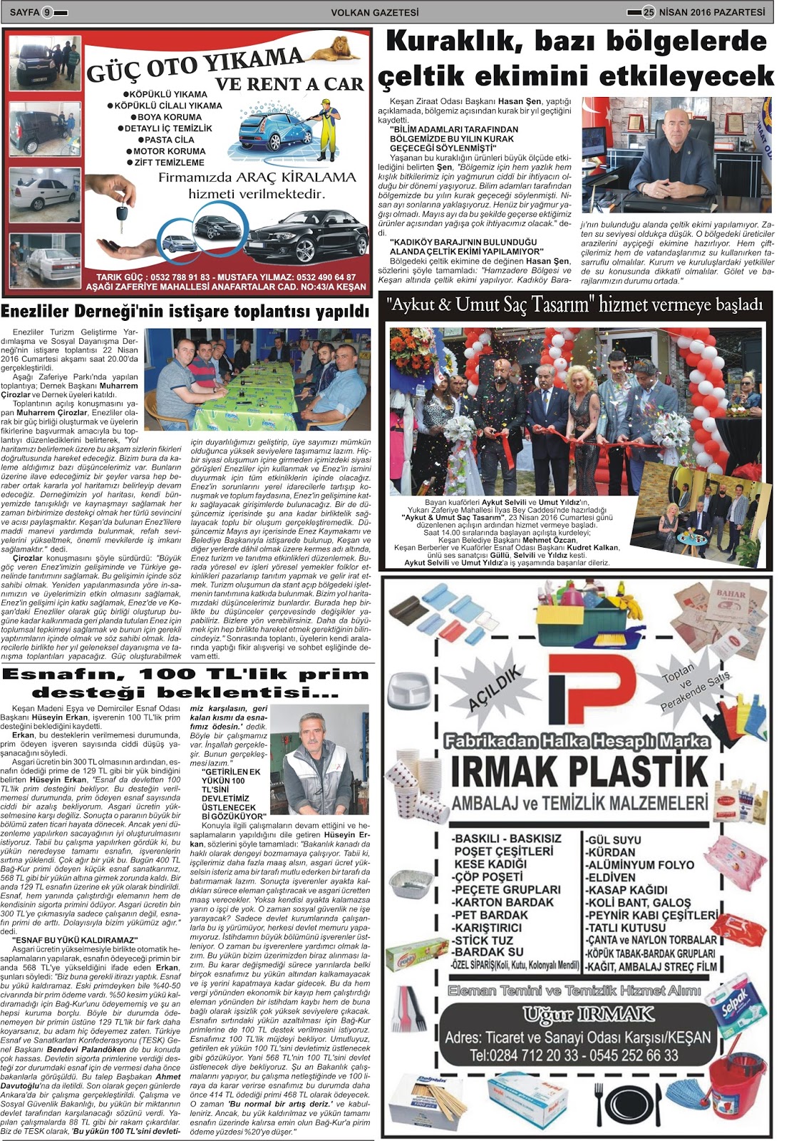 25 NİSAN 2016 PAZARTESİ GAZETEMİZ