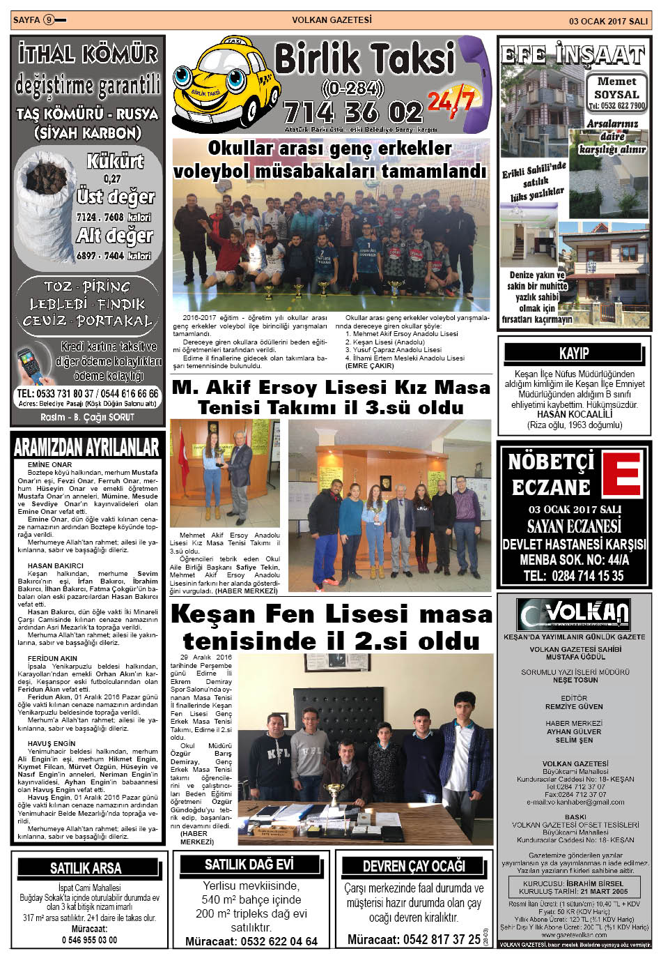 03 OCAK 2017 ÇARŞAMBA GAZETEMİZ