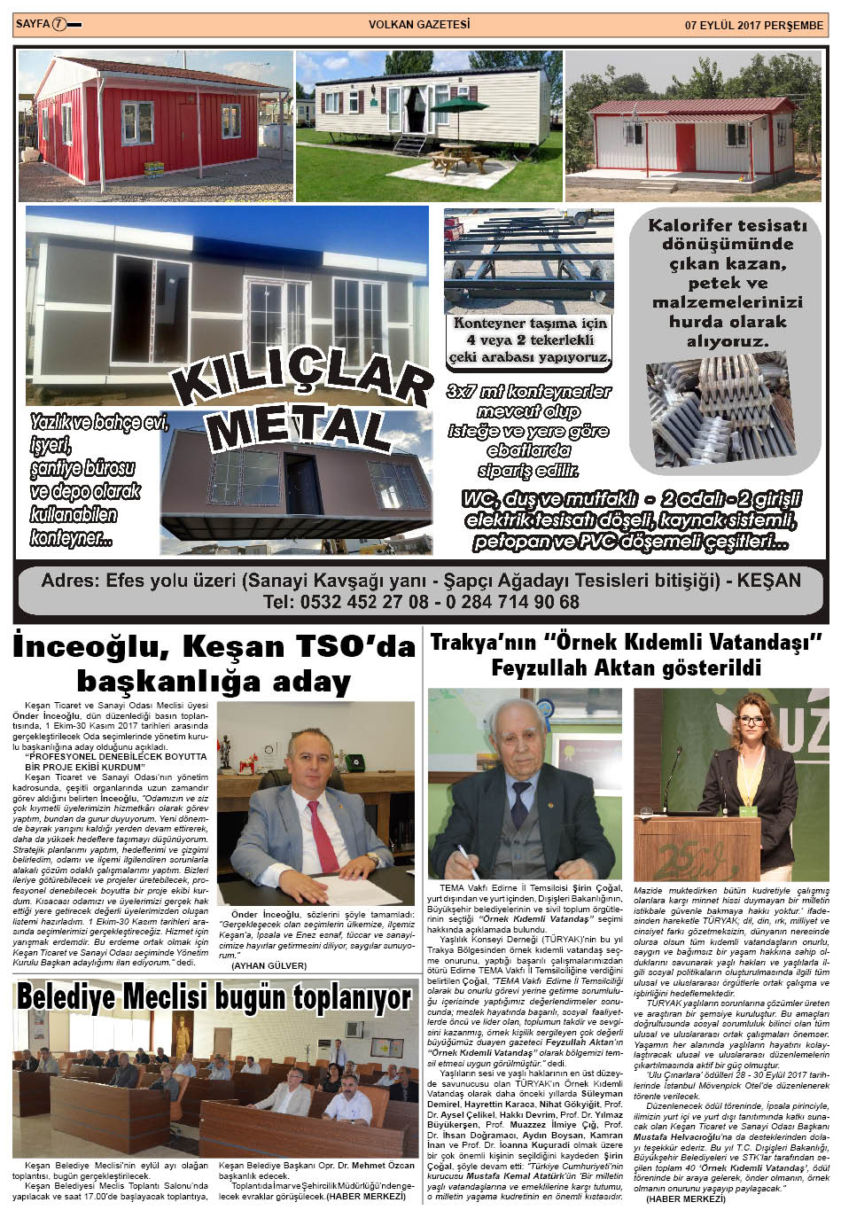 07 EYLÜL 2017 PERŞEMBE GAZETEMİZ
