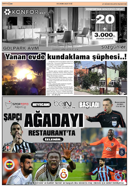 27 AĞUSTOS 2018 PAZARTESİ GAZETEMİZ